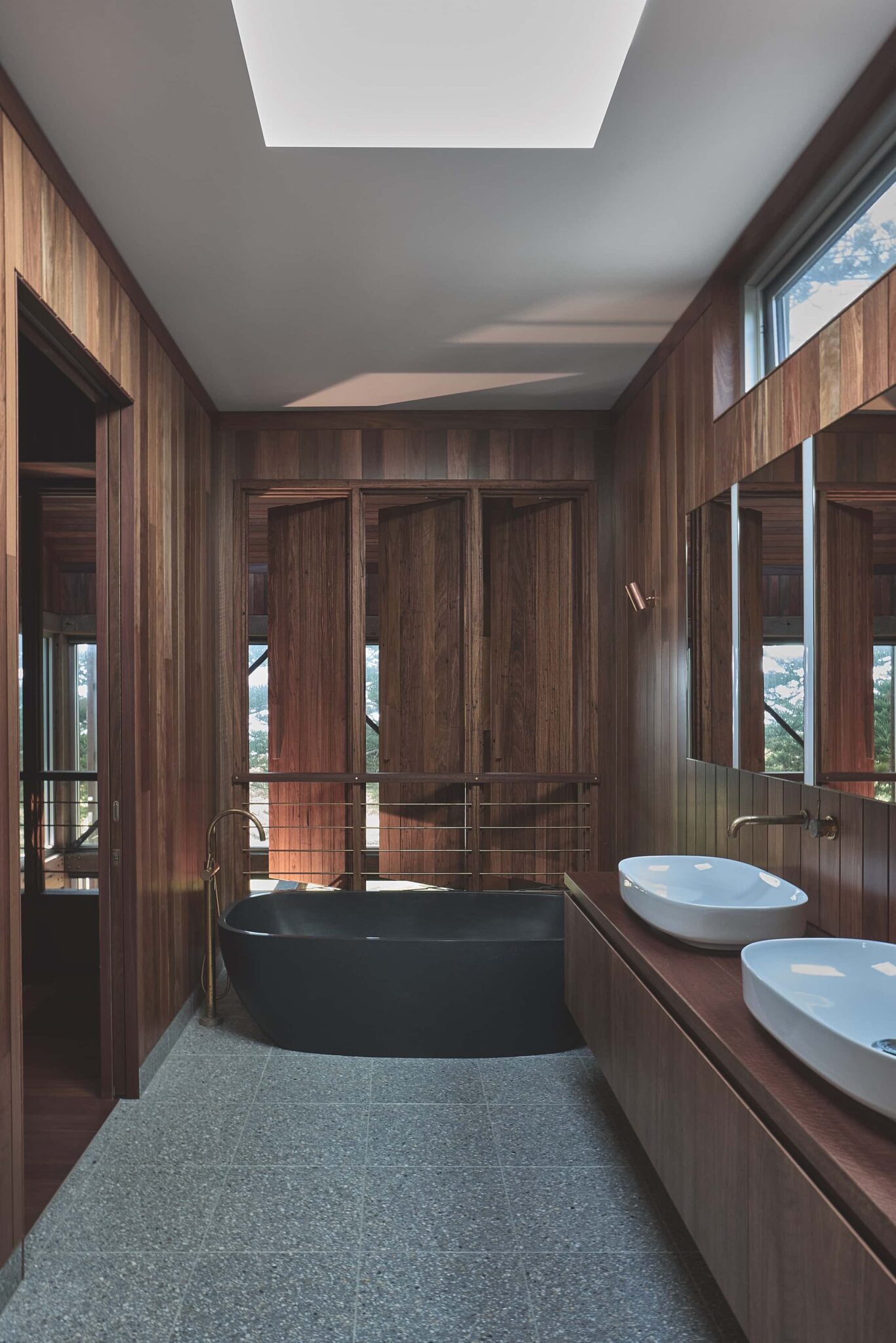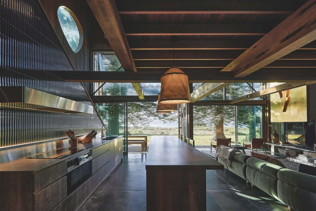 The site, inherited by the current owner from his parents, once held a modest two-bedroom asbestos-laden shack. But it was the backdrop to long childhood summers spent fishing and swimming. As a place layered with personal memories, the client still returns, now with his own family in tow. The brief then was to recapture that sense of retreat while bringing in modern amenities and anticipating future needs. “There was a very strong brief around memory, but also a desire to set an example of how you might build by the sea in a more thoughtful way,” Rob Brown, of Casey Brown Architecture notes.