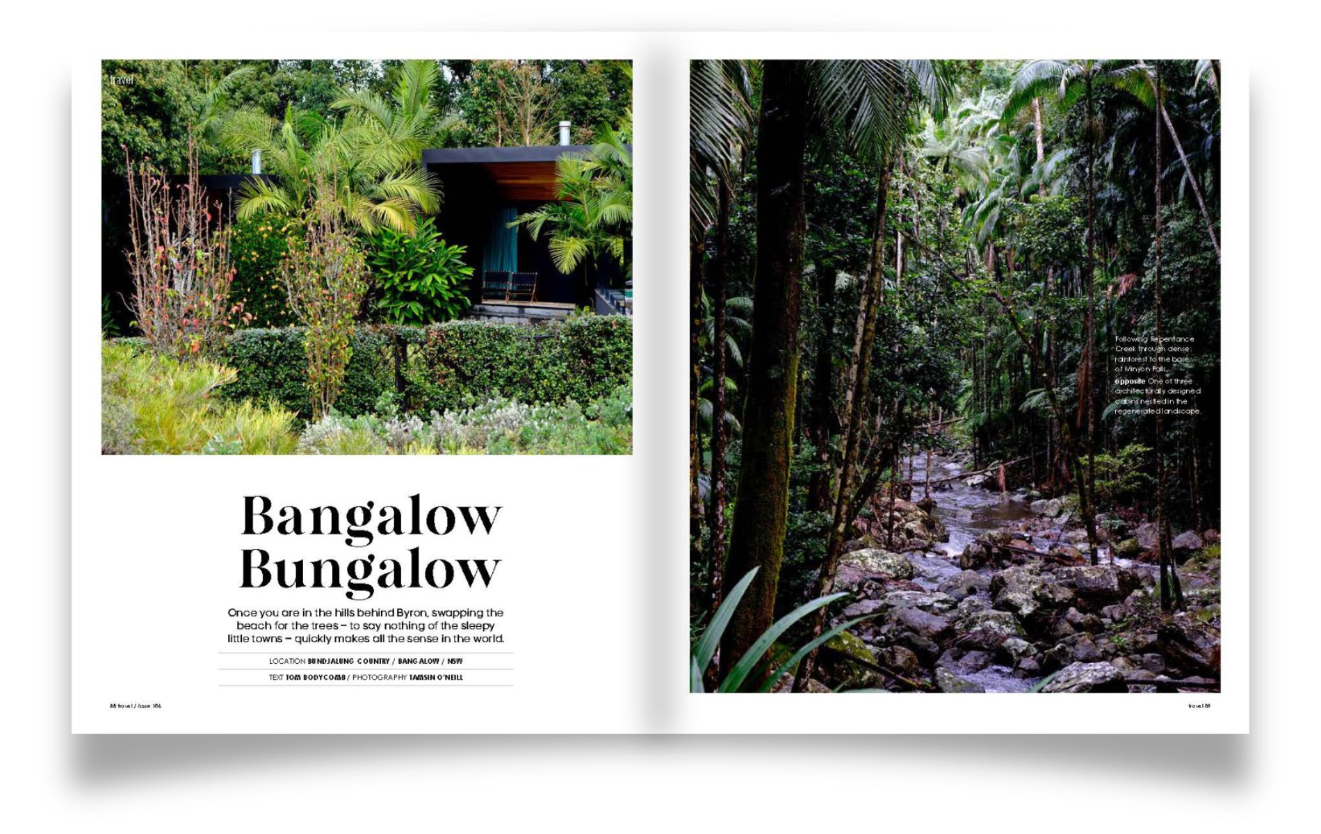 And finally for our travel feature; the Byron hinterland’s Amaroo Bangalow marries regeneration and slow living across three light-touch studios, with outdoor baths, wide decks and passive comfort among eucalypts.