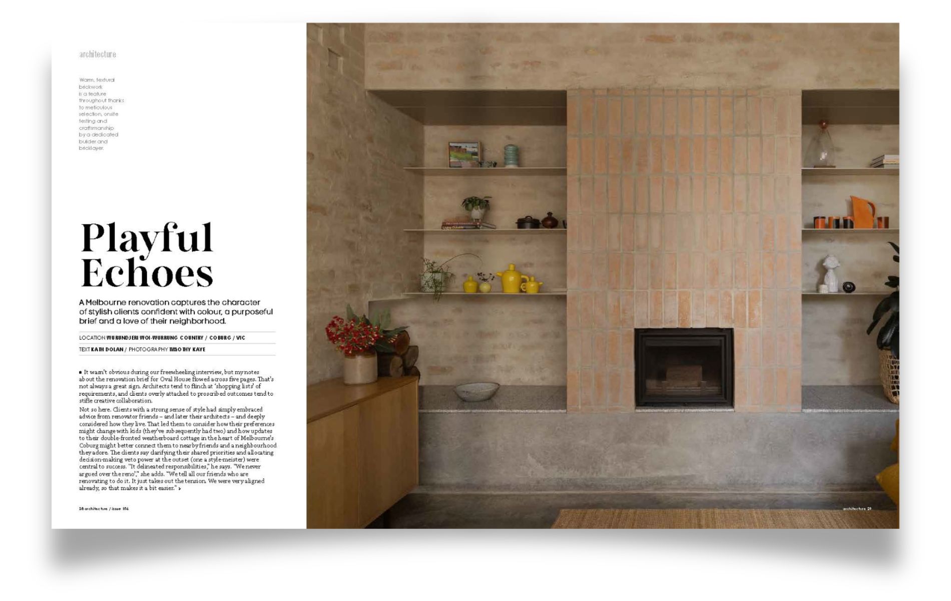 Our first architecture feature; Playful Echoes by Topology Studio channels a precise yet open brief into a warm Coburg renovation where colour, collections and passive design align with a life lived among friends.