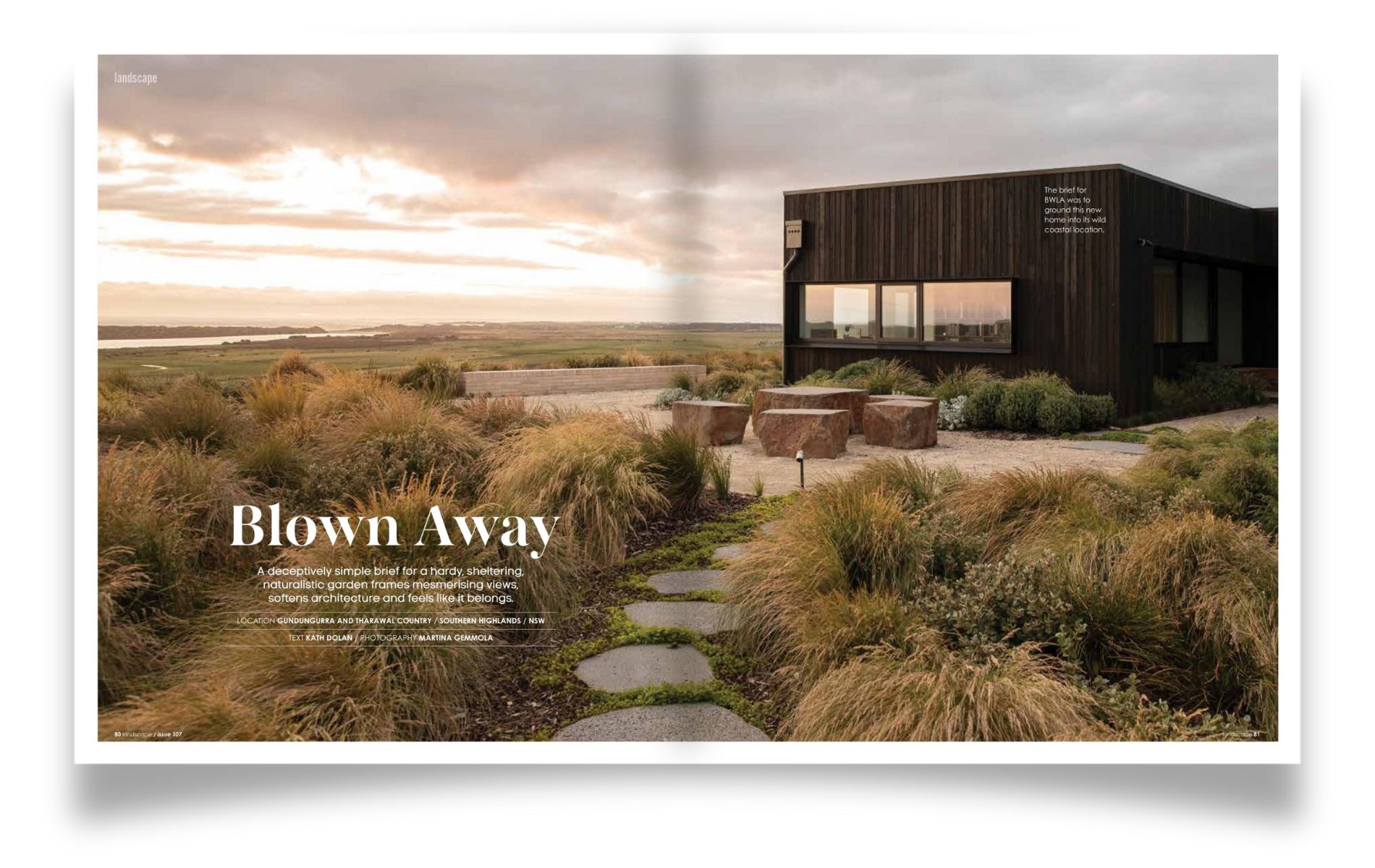 And our second landscape feature explores a resilient, naturalistic garden designed for an exposed coastal site buffeted by strong winds. Created by Bethany Williamson Landscape Architecture, the garden at Illowa Cliffs grounds a dramatic house into its setting through hardy grasses, low plantings and carefully placed stone that frame views, soften architecture and belong to the landscape.
