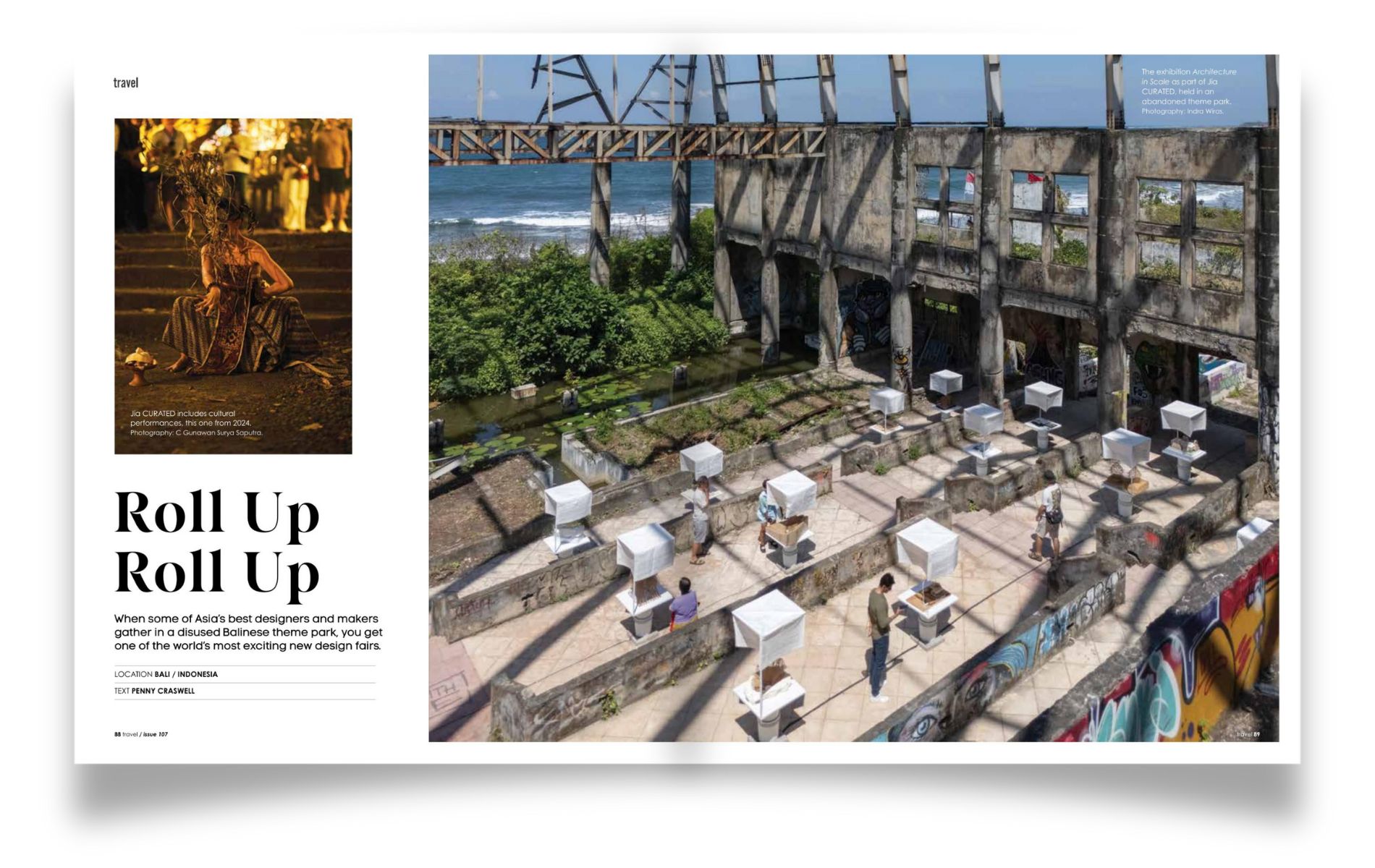 And finally, our travel feature visits a design festival in Bali set within the ruins of a disused theme park. Jia CURATED brings together designers, makers and artists for an immersive weekend of craft, culture and environmental thinking, where installations, performances and sustainable design practices unfold among existing concrete structures reclaimed by jungle.