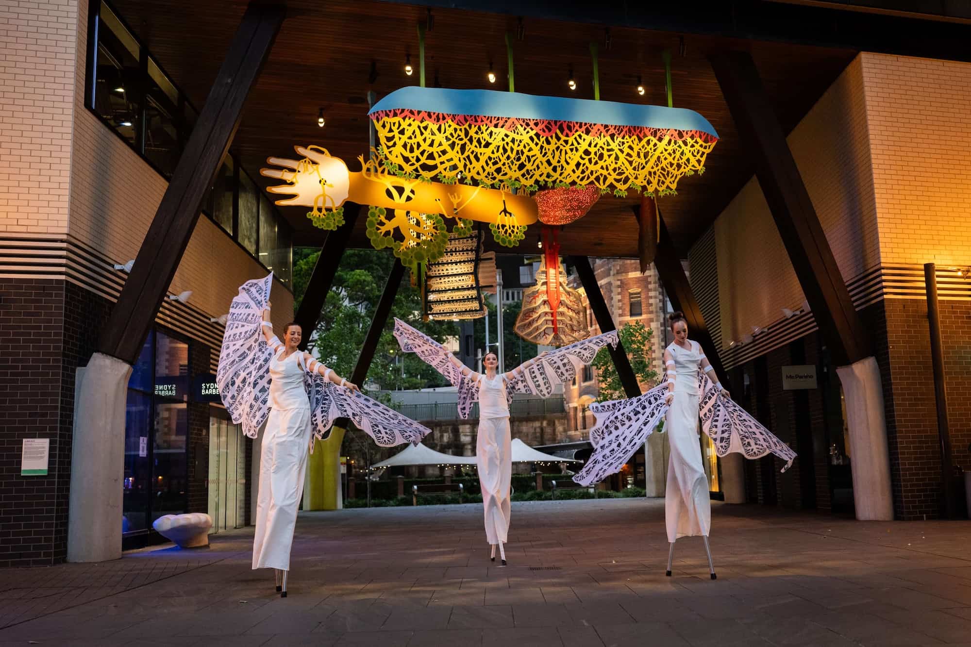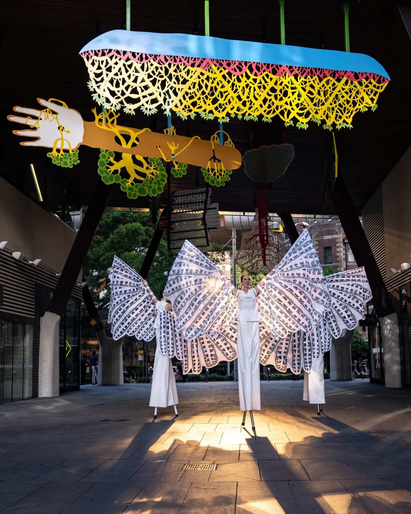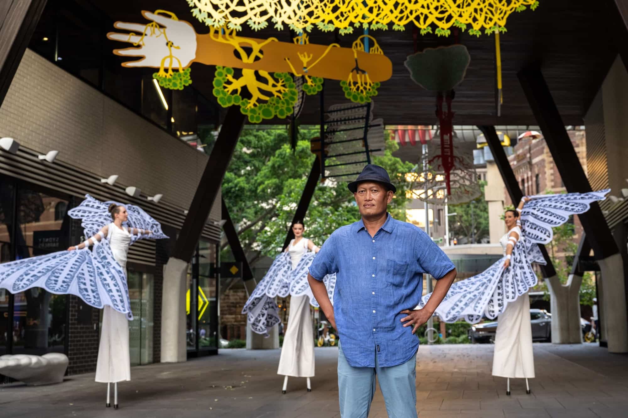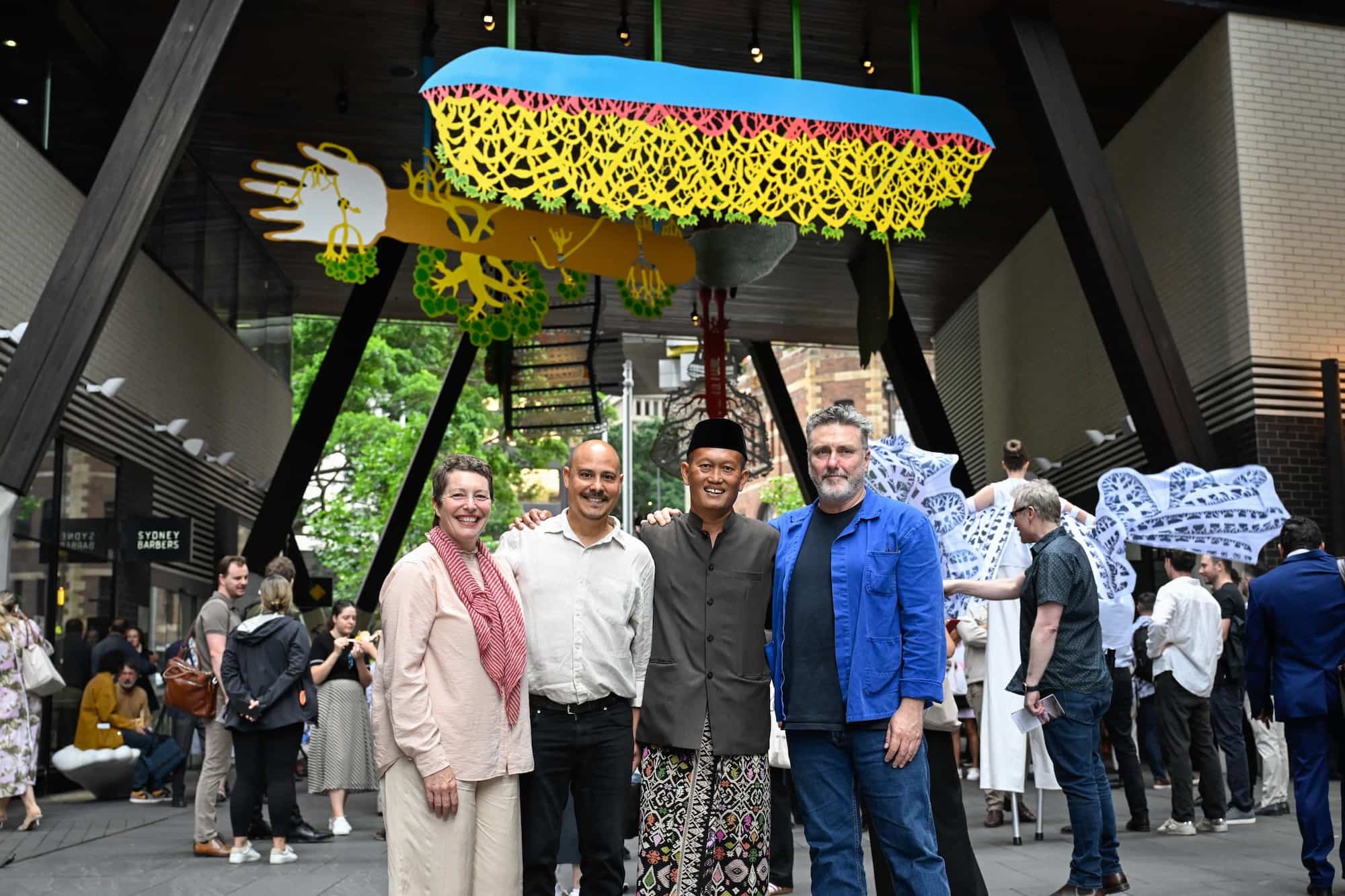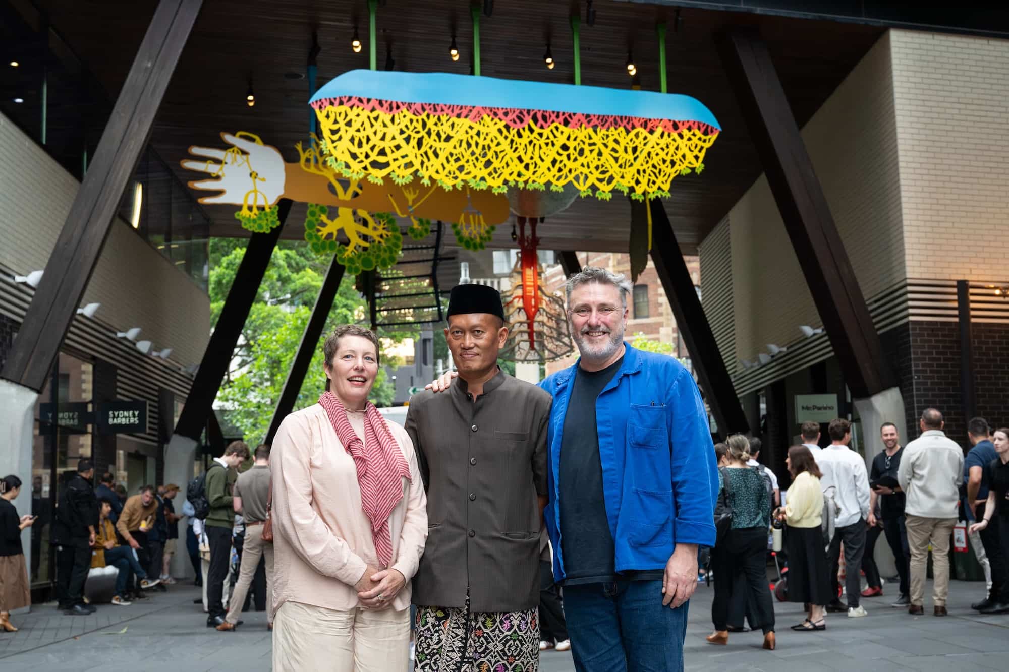Commissioned by Lendlease in partnership with Infrastructure NSW and curated by Glenn Barkley and Holly Williams, the work is a magical environment that evokes the transformation of life and objects from one state to another. These hybrid forms in turn are inspired by myth and memory and drawn from the artist’s Indonesian heritage, his own personal motifs, traditional shadow puppetry and storytelling.