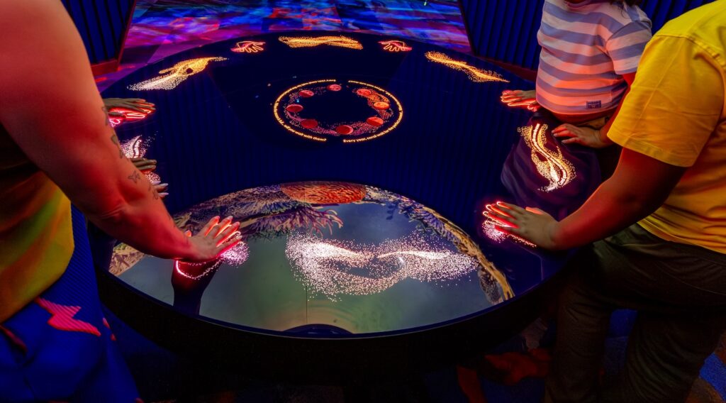 In the reflective First Peoples-led space, Our Roots, visitors will feel a sense of care, reciprocity and connection to Country and nature, while Our Moment is an interactive multimedia space encouraging visitors to work together to address ecological problems facing our planet.