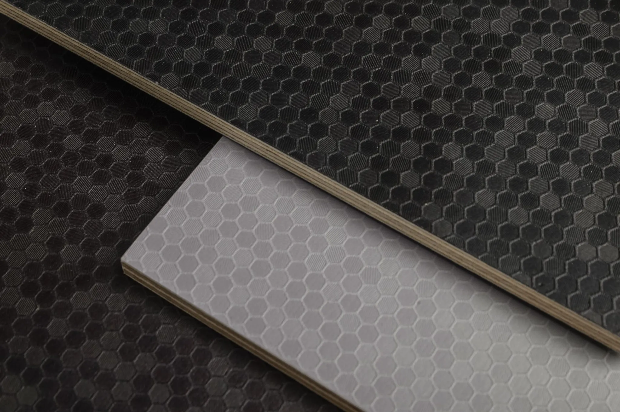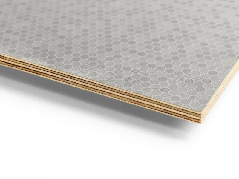 Riga Hive Silver Grey is a premium birch plywood overlaid with a durable, textured film based on melamine resin. Designed for high-performance use, it offers excellent wear resistance along with a refined, modern look.